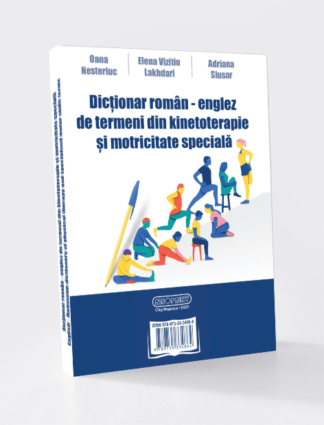 Dicționar român – englez de termeni din kinetoterapie şi motricitate specială. English- Romaninan dictionary of physical therapy and specialized motor skills terms se dorește a fi o resursă importantă pentru procesul de învățare, documentare și aplicare a cunoștințelor contribuind astfel la standardizarea limbajului de specialitate și la creșterea calității actului terapeutic în domeniul kinetoterapiei. Necesitatea unui astfel de material derivă din importanța deosebită a utilizării unei terminologii corecte, unitare și clare care este importantă atât pentru o comunicare eficientă între specialiști, cât și pentru formarea adecvată a viitorilor profesioniști din domeniu.